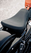 Radical attitude and straight on style come from a series of distinctive elements. Black components including air cleaner cover, clutch and brake levers and turn signals, low custom handlebars with under bar mounted mirrors, side mount license plate, unusually clean chopped rear fender with combination stop/turn/tail lights, shorty dual exhaust to pound out the distinctive Harley sound, fork-mounted turn signals, slammed speedometer mounting bracket and fork brace with lightening holes, dual texture solo seat (passenger pillion, foot-pegs and backrest are available). The Forty-Eight is available in Vivid Black, Brilliant Silver and Mirage Orange Pearl colors. Soon at your Harley-Davidson dealer.